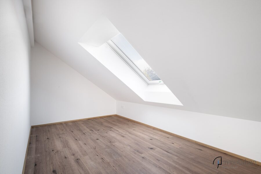Auf dem Weg ins Dachgeschoss wird man sofort mit einem hellen Flur begrüßt, der durch das Dachfenster mit Tageslicht versorgt wird. Hier oben findet man zwei weitere große Zimmer, ideal für Homeoffice oder als Rückzugsort.