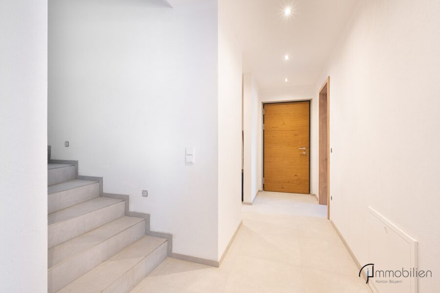 Durch die tolle Echtholz Eingangstür gelangen sie in den geräumigen Flur, der wie alle Räume im Haus mit einer Fussbodenheizung ausgestattet ist. Ihre Jacke und Schuhe können sie rechterhand in der offenen Ankleide verstauen. Diese bietet auch bei vielen Großen und kleinen Füssen genügend Stauraum für Schuhschrank und Jackenaufbewahrung.